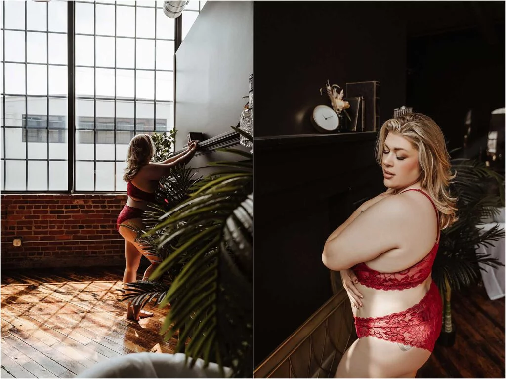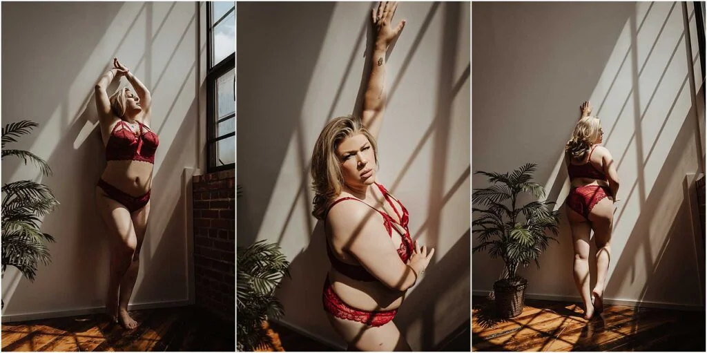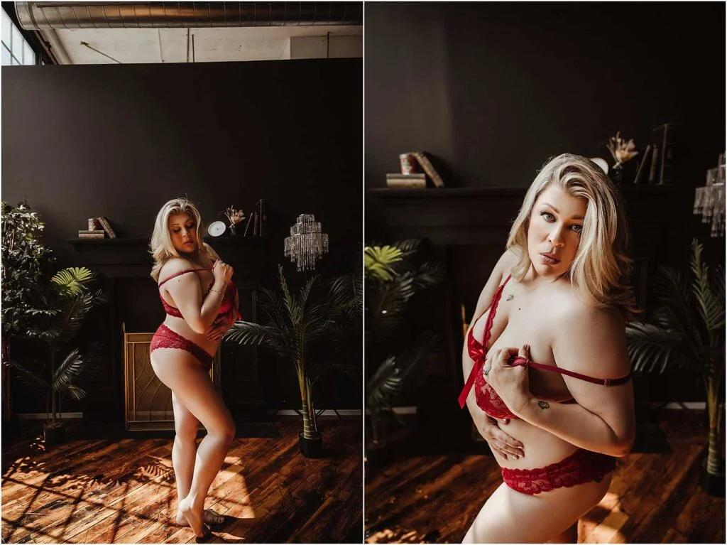 There’s a special kind of magic that happens when a woman steps into her power and embraces her true self. That’s exactly what unfolded during this babe’s recent boudoir session. From the moment she walked through our studio doors, she was ready to shed the everyday roles and step into her most authentic self. In red lingerie that accentuated her fierce confidence, she radiated empowerment, reminding us all why celebrating ourselves is so crucial.
